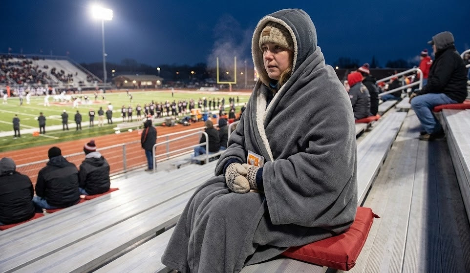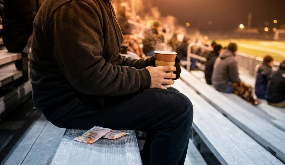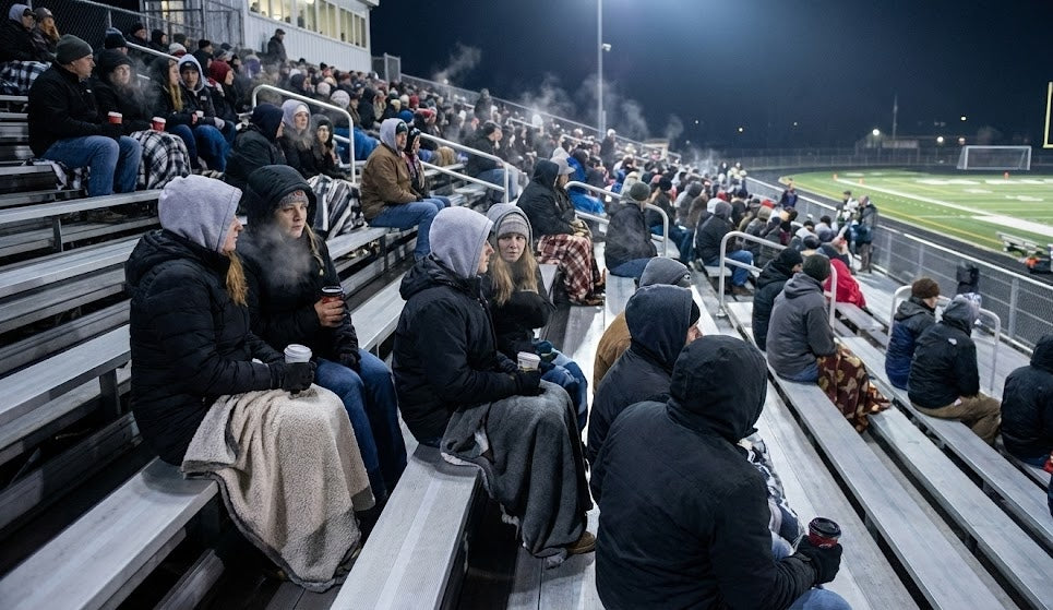 So, forty-five minutes into a January night game and your fingers have stopped working. The temperature isn't the only problem - it's that you're sitting perfectly still while 35-degree air sneaks through every gap in your hoodie.What kept you warm on a fall afternoon will fail completely when you're locked in place on cold metal for two hours. Fabric weight, zipper style, and a few low-tech tricks make the difference between watching the game and counting the minutes until you can leave. Some of this is about choosing the right spirit wear. Some of it's about cardboard and chemical heat packs. All of it assumes you'll be parked on bleachers until the final whistle.