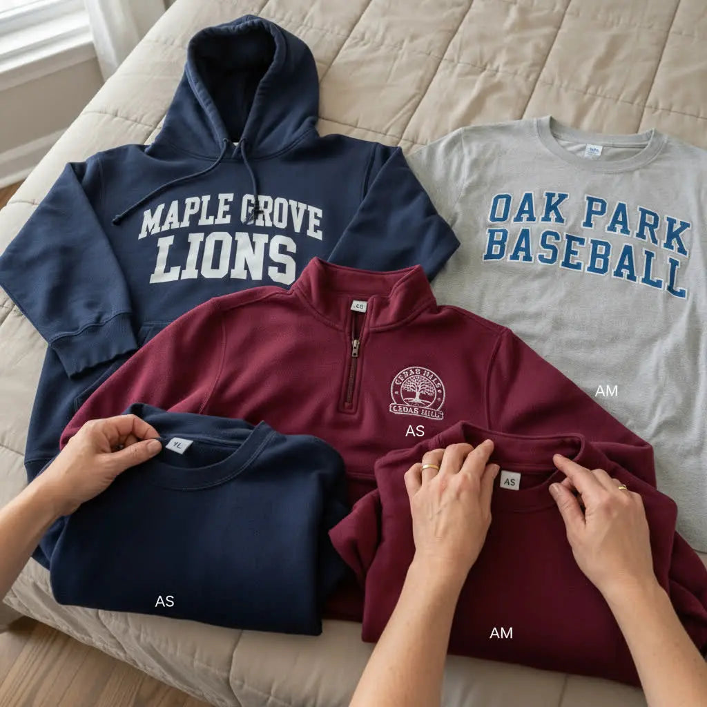 You're browsing your school's online spirit wear store at 10pm on a Tuesday, trying to decide between a youth large and adult small for your 12-year-old. Will the youth large be too tight by December? Will the adult small swallow them whole? You toggle between product images, check the measurements one more time, and still aren't sure. This is the reality of buying spirit wear online - you're making decisions about sizing without the benefit of trying anything on first, and the wrong choice means your child either refuses to wear it or outgrows it before the season ends. The anxiety is real because spirit wear isn't like regular clothing. These items are custom-printed with your school's name and logo, which means most stores have strict no-returns policies except for quality defects. You can't just send it back if the sizing is wrong. Understanding how different brands fit and when to size up or down removes most of this guesswork.